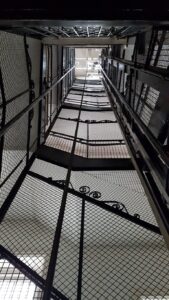 The one issue we anticipated was the mesh shaft surround and lattice gates of the car and landings.