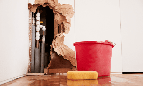 There is no easy fix, but stopping the leak as soon as possible is certainly the priority. Once the leak has been stopped, the key is to get the water cleared up quickly to prevent more damage than necessary. For large amounts of water, use an aqua vac (a hoover for water) and dehumidifiers to pull water out of the air, walls, and floors.