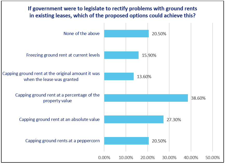 The consultation went to identify which of the government’s proposals to rectify issue were most appropriate. Members determined that the best potential solutions are capping ground rent at a percentage of the property value (favoured by 38.6%), capping ground rent at an absolute value (27.3%) or capping ground rents at a peppercorn (20.5%).