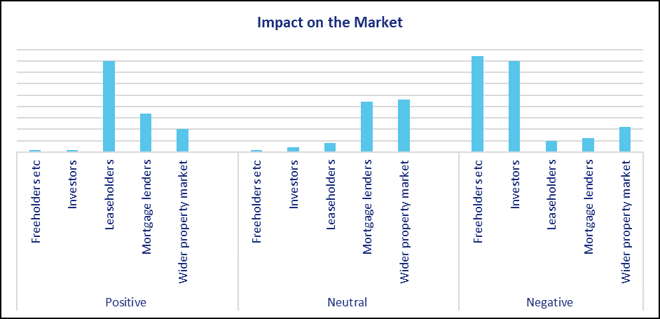 Respondents considered the potential impact on various groups: freeholders/intermediate landlords, investors (including local authorities pension funds and others), leaseholders, mortgage lenders, the wider property market (developers conveyancers estate agents etc.).