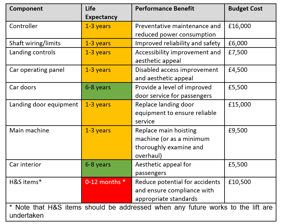 We are happy to offer quotes for these, and can survey single lifts up to entire portfolios, subject to a client’s requirements.