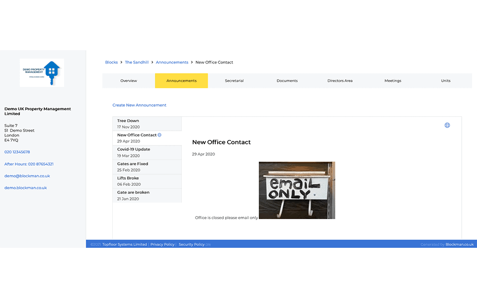 Blockman is web based and hosted on AWS (London). As a licensed user, you will receive system updates as soon as the features are developed or improved. Blockman also incorporates a Leaseholder Portal ( Myblockman ) for 24 hour / 7 day week secure online access. Blockman updates Myblockman and automatically generates email notifications of service charge demand, receipts, documents etc.