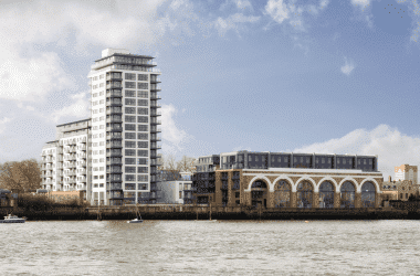 Paynes and Borthwick Wharf started life as a marine boiler factory on the banks of the Thames in Greenwich, south east London. The building was one of many that served the historic Deptford naval dockyard; those that remain are now largely converted to other uses along the river. The Grade-ll listed buildings at Paynes and Borthwick Wharf have been used as the centrepiece by the developers for a substantial mixed-use development that makes the most of its urban, riverside setting. Overlooking Canary Wharf on the opposite side of the river, the scheme – which has taken more than seven years from planning to completion, now comprises 253 apartments and ten live and work units, together with more than 34,000 sq ft of commercial space.