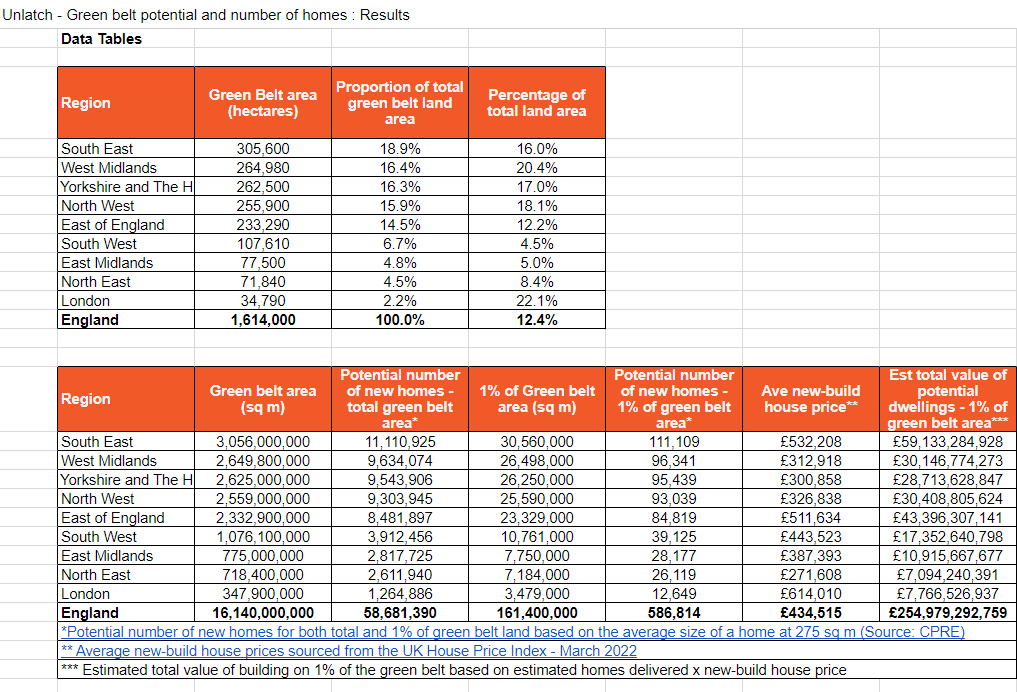 The latest research by new-build specialists, Unlatch, has shown that building on just 1% of the nation’s green belt could help ease the housing crisis to the tune of almost 600,000 new homes, with an estimated market value of £255bn.