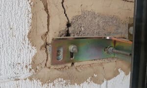 Image: Lift installed into lightweight Thermalite block shaft, which has led to guide brackets becoming dislodged from structure.