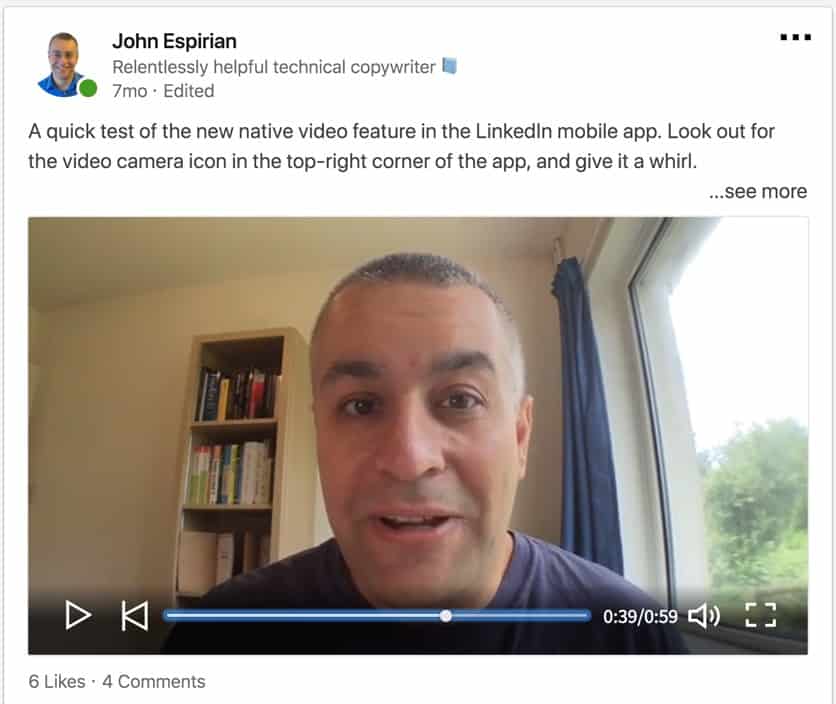 If you share video on LinkedIn, make sure you upload it directly to LinkedIn rather than pasting in a link to YouTube or another video site.