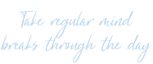 Build into your working day time to break. When we are busy and under pressure it’s easy to motor on through the day without a break. This leads to mind overload. Taking regular breaks keeps you fresh, helps you reset and recharge and disrupts the bodies stress cycle. Quick and easy ways to do this include: making a cuppa, taking a brisk walk around the block or practising a couple of belly breaths away from your desk.