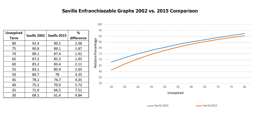 In order to work out how much relativities have fallen, I have considered the Savills 2002 and Savills 2015 Enfranchisable graphs and noted the Lands Tribunal view: