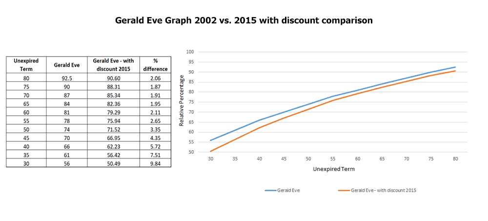 The original Upper Tribunal Decision found favour with the Gerald Eve Graph (“industry standard”) and both Savills 2002 and Savills 2015. As part of that decision and on several cases after that decision there has generally been a view that relativities have fallen since the graph was formulated: