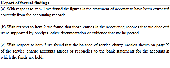 It is best practice for an independent accountant to either; examine the service charge accounts and report certain factual findings or to audit the service charge accounts.